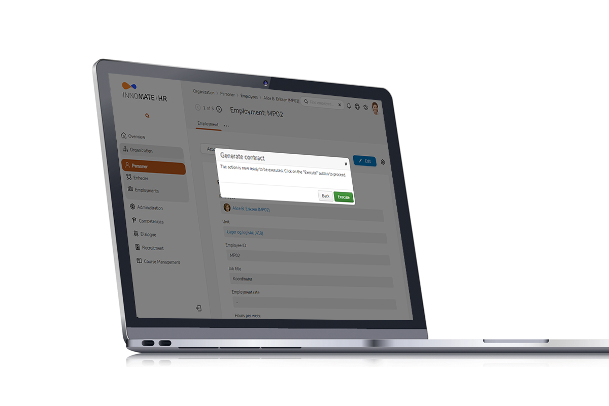 In INNOMATE HR, templates can be created with the required merge fields. Along the way in eg. the recruitment process, data is collected dynamically in INNOMATE HR and provides the basis for the generation of a employment contract.