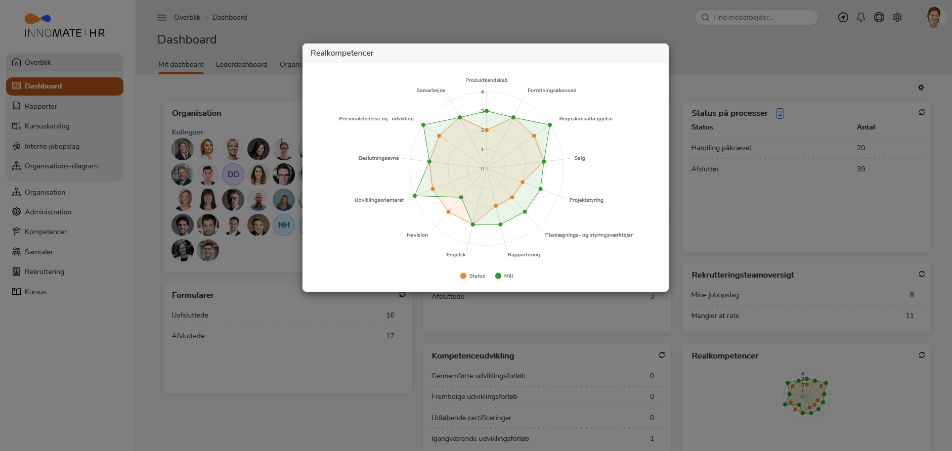 Based on the employee's profile, managers and employees are provided with a simple dialogue tool for assessing the employee's skills and development needs. As an organization, you get a comprehensive overview of you employees competencies and which you need to develop or attract.